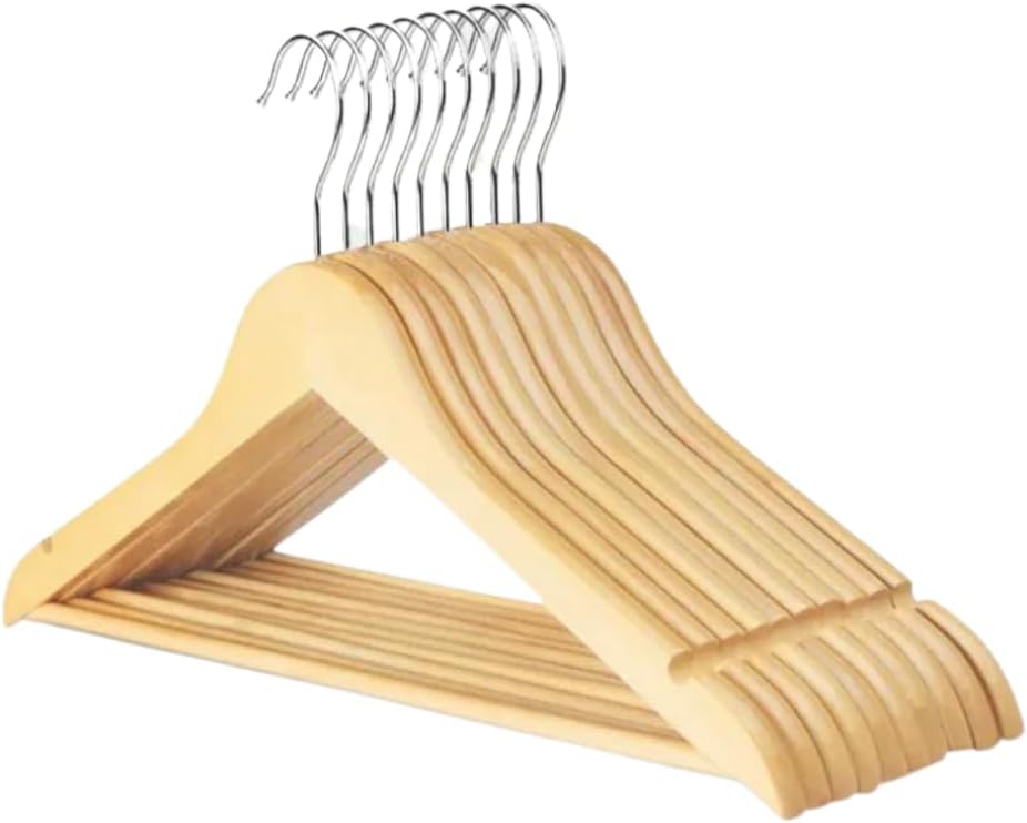 Grade-A Strong Natural Wooden Cloth Hangers – Pack of 10