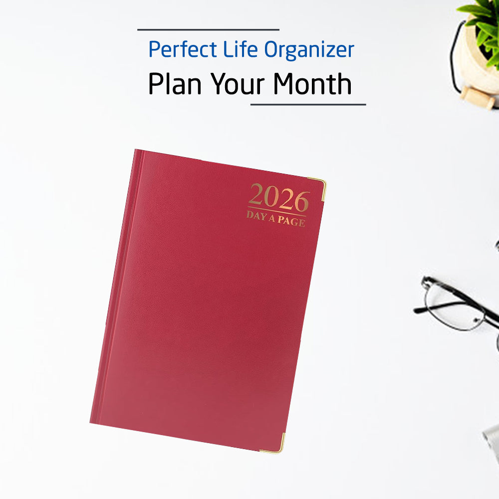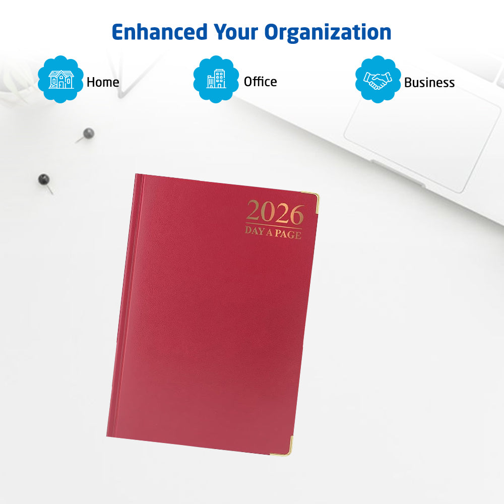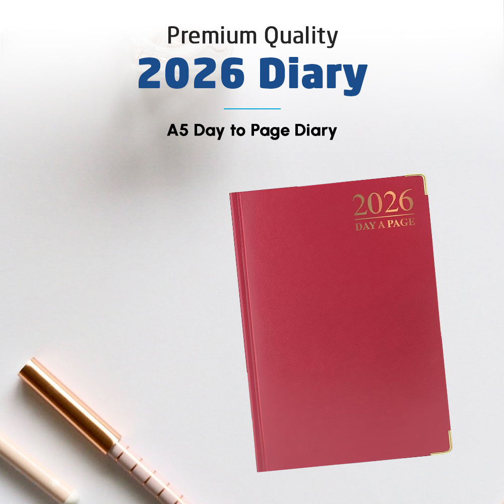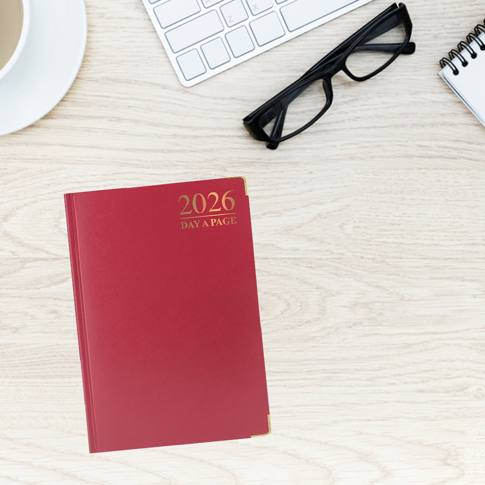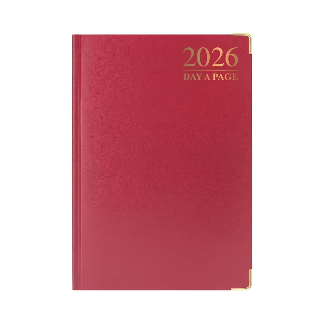 2026 - A5 Day to Page Diary | Hardback Gilt Edges Metal Corners for Home and Office Use - red is backordered and will ship as soon as it is back in stock.
