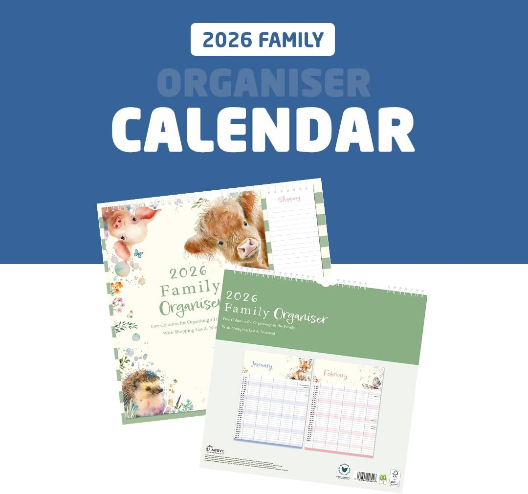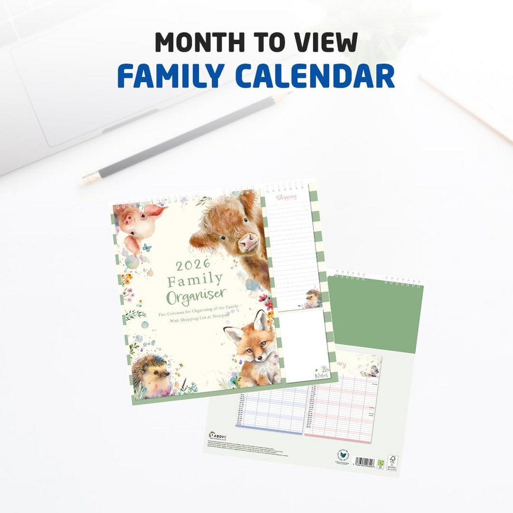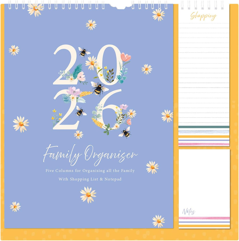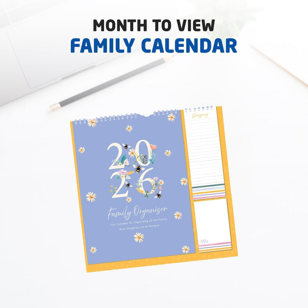 Stay organised in 2026 with the 1ABOVE Family Organiser Calendar. Designed with busy households in mind, this practical wall planner includes five columns per month—making it easy to track schedules for each family member. The included memo pad and shopping list add extra convenience, ensuring nothing gets forgotten. With stylish themes to choose from—Bees, Animal, Town, or Flower—it’s as decorative as it is functional.
