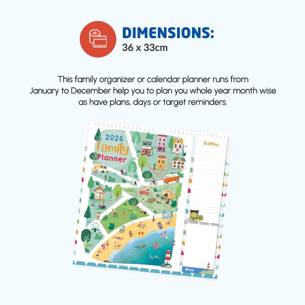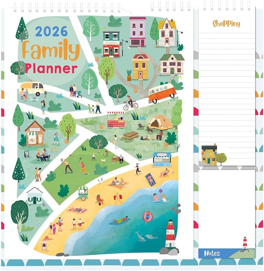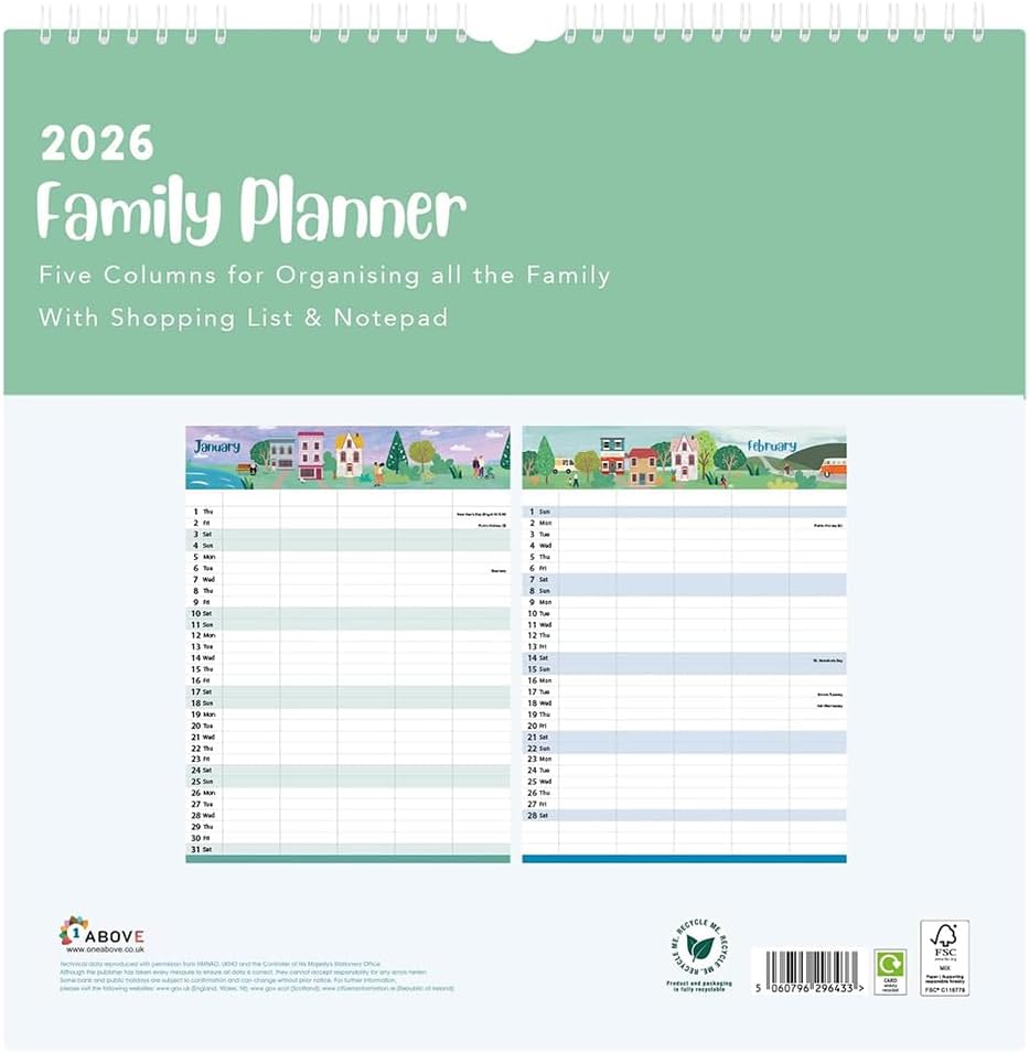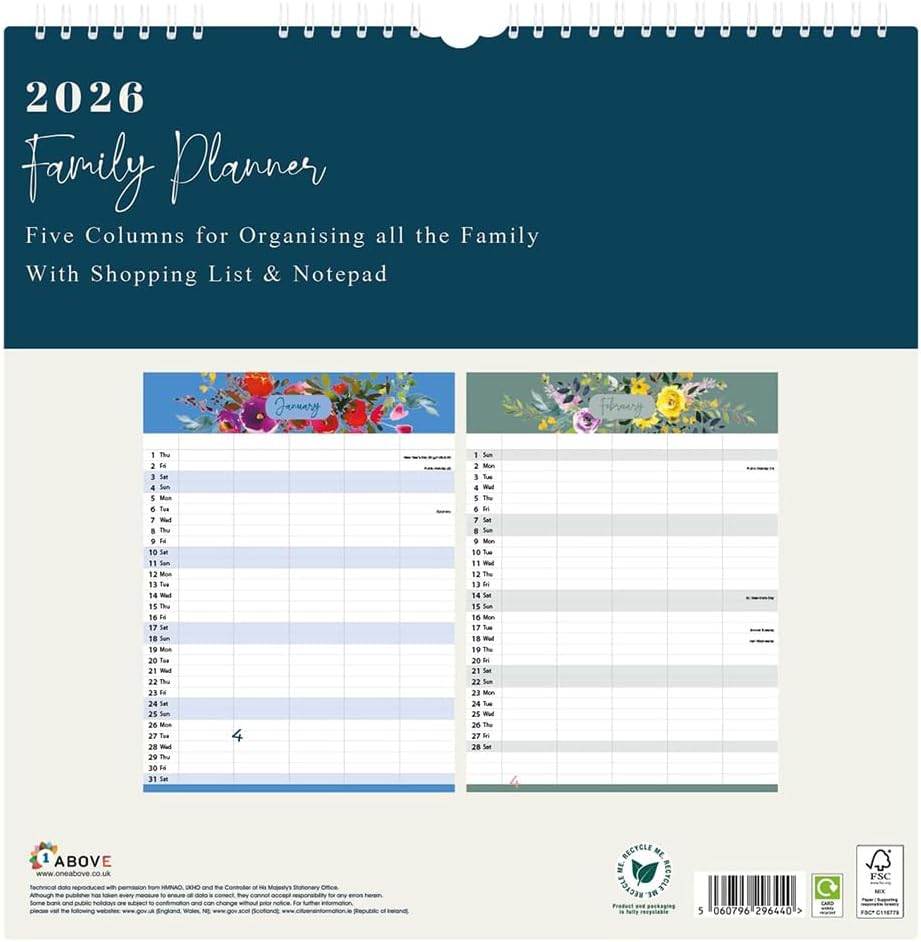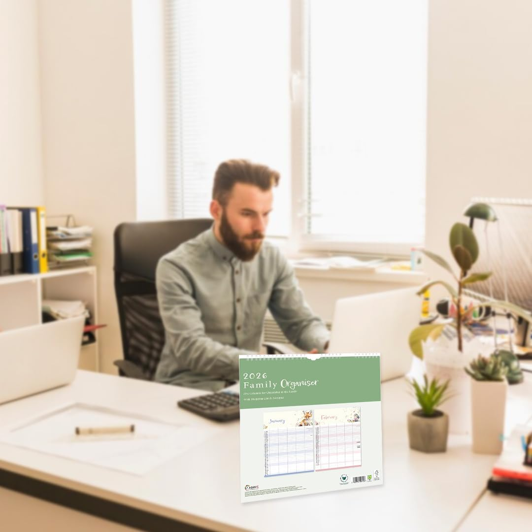 Stay organised in 2026 with the 1ABOVE Family Organiser Calendar. Designed with busy households in mind, this practical wall planner includes five columns per month—making it easy to track schedules for each family member. The included memo pad and shopping list add extra convenience, ensuring nothing gets forgotten. With stylish themes to choose from—Bees, Animal, Town, or Flower—it’s as decorative as it is functional.