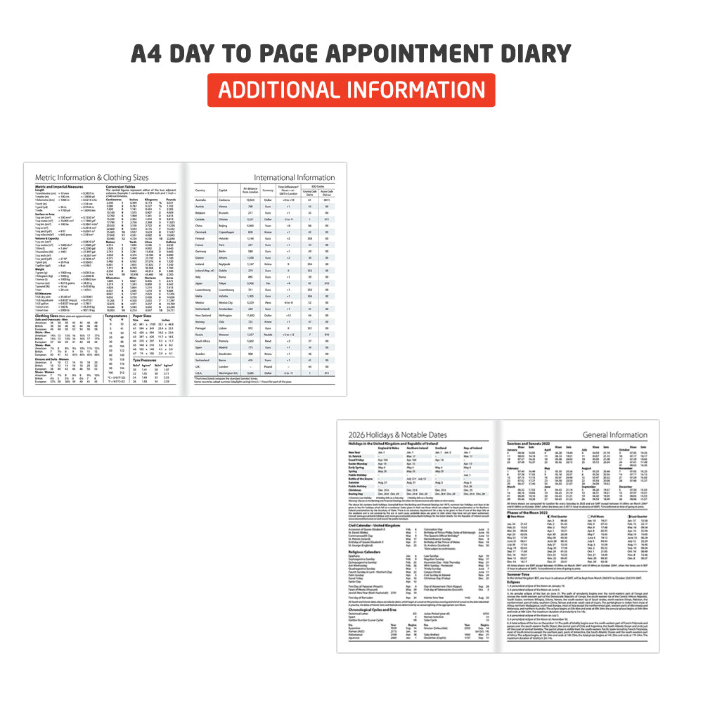 2026 Premium Quality A4 Day to Page Appointment Diary, Hardback Casebound Cover - BLACK is backordered and will ship as soon as it is back in stock.