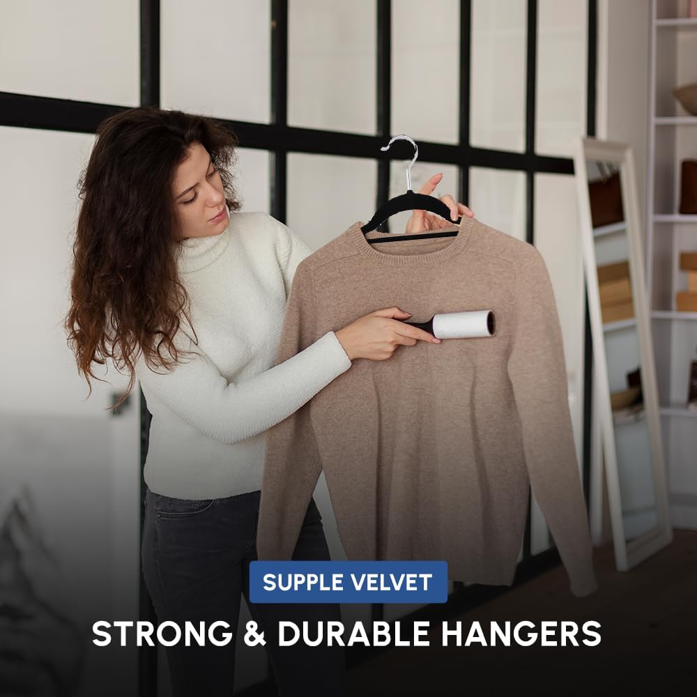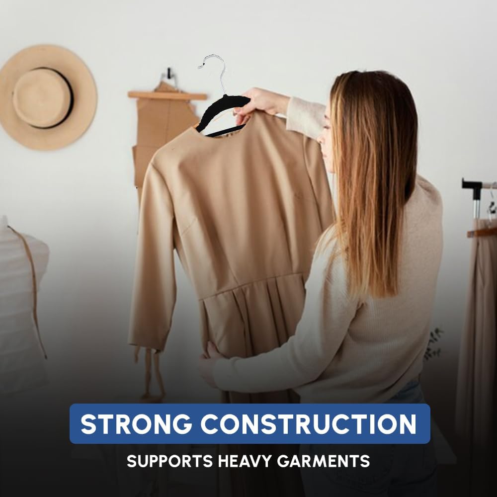 The Premium Velvet Hangers are designed to deliver the perfect balance of strength, elegance, and practicality. Unlike plastic or wooden hangers, the soft velvet finish provides a powerful non-slip grip that keeps garments securely in place without stretching or marking fabrics.
