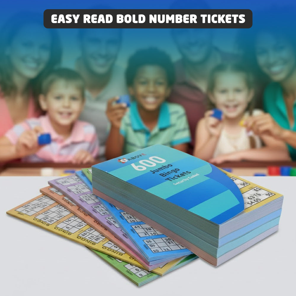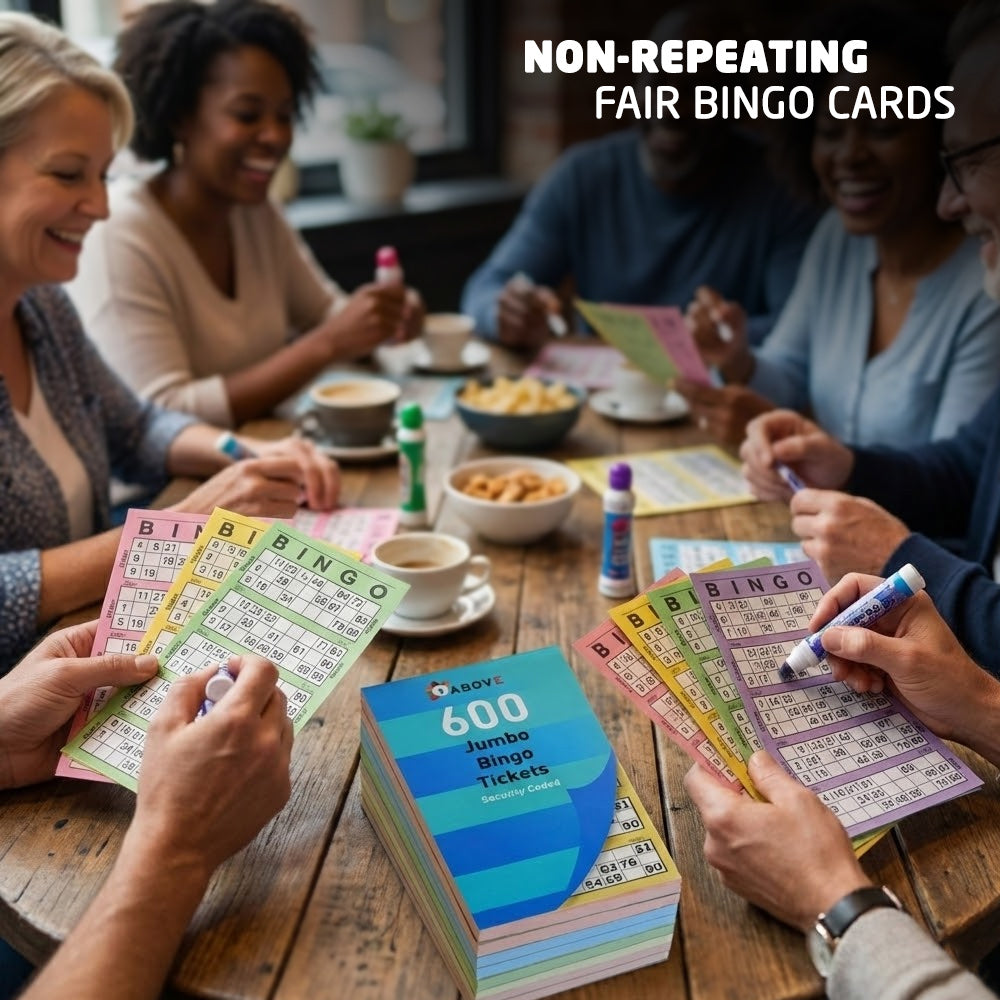 1ABOVE Bingo Tickets are designed with clarity, fairness, and durability in mind. The jumbo-sized, bold numbers reduce eye strain, making them ideal for players of all ages. Each ticket is randomly generated, ensuring non-repeating, tamper-proof gameplay you can trust. The high-quality paper works seamlessly with dabbers and pens without bleeding or smudging, making these tickets a dependable choice for everything from casual family games to professional bingo events and fundraisers.