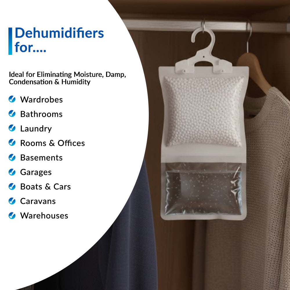 Buy Hanging Dehumidifiers for Damp, Mould, and Moisture in Wardrobes, Bedroom, Caravans, Bathrooms, and Basement