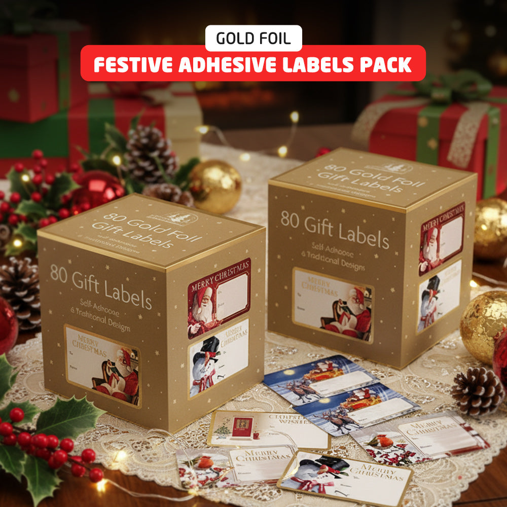 The 1ABOVE Christmas Adhesive Label Pack offers the perfect blend of beauty, convenience, and value. With 160 premium-quality foil labels in holographic, gold, and silver finishes, you’ll never run out of festive tags during the busy holiday season. The strong peel-off self-adhesive backing eliminates the need for glue or tape, making gift-wrapping quicker and mess-free. Whether for home gifting, office use, classrooms, or retail packaging, these labels ensure every present looks professionally finished and beautifully personalised.