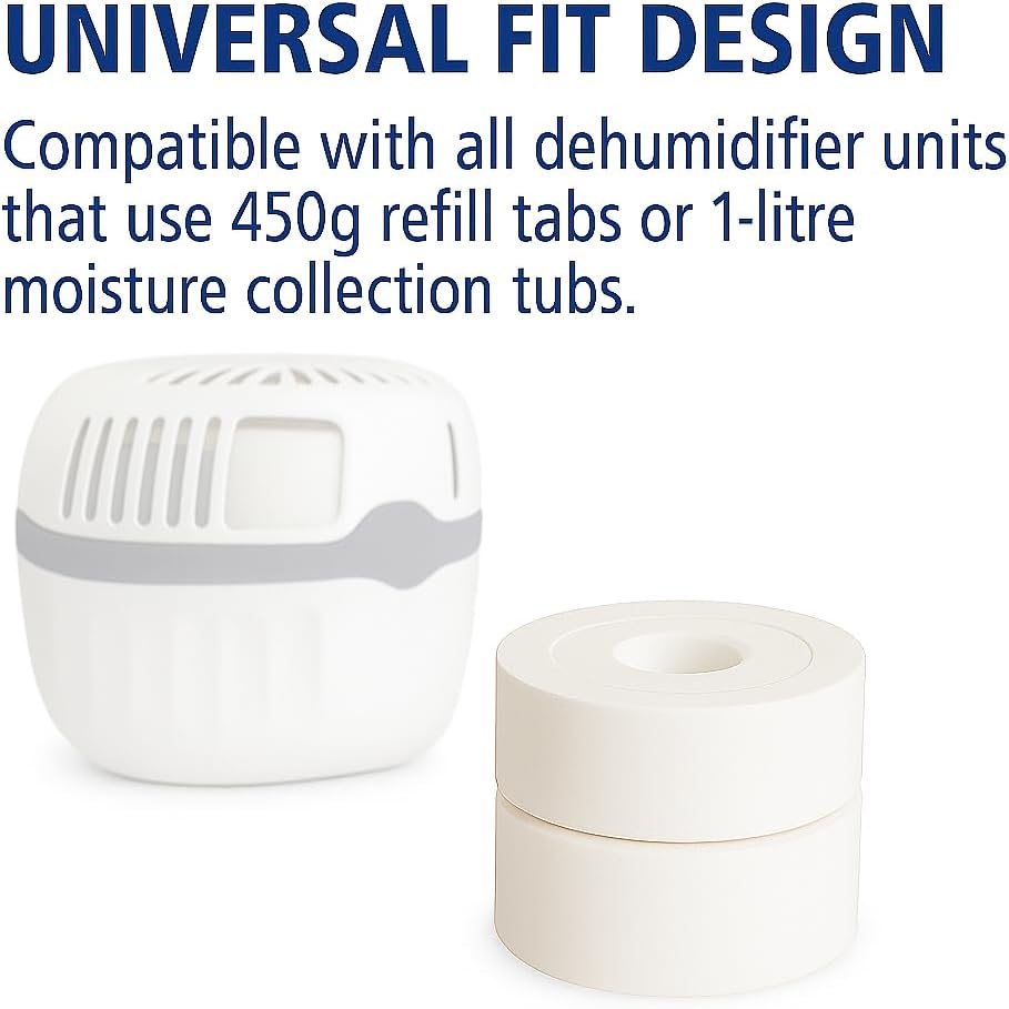 Universal Compatibility: Fits most dehumidifiers that use 450g refill tabs or 1L water collection tubs.