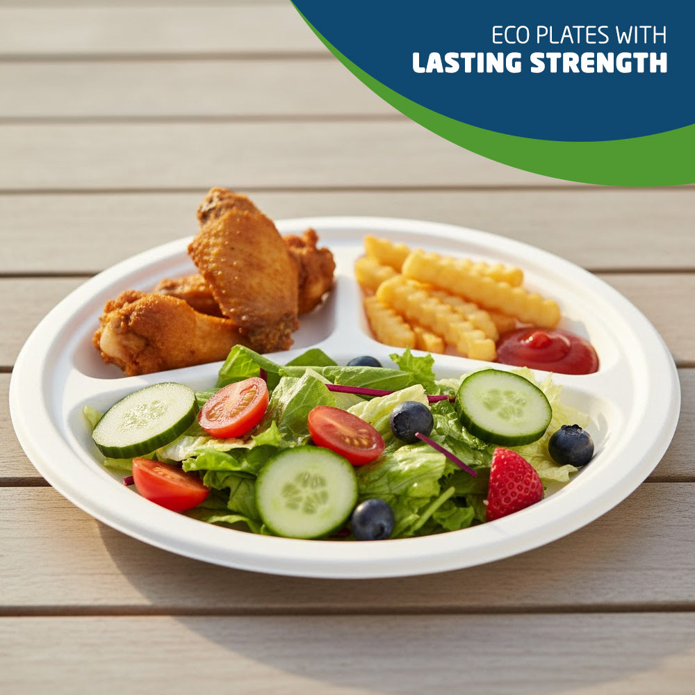 Crafted from all-natural sugarcane fibers, these Party plates are an eco-conscious choice that won't harm the environment. They are biodegradable and contribute to reducing waste.