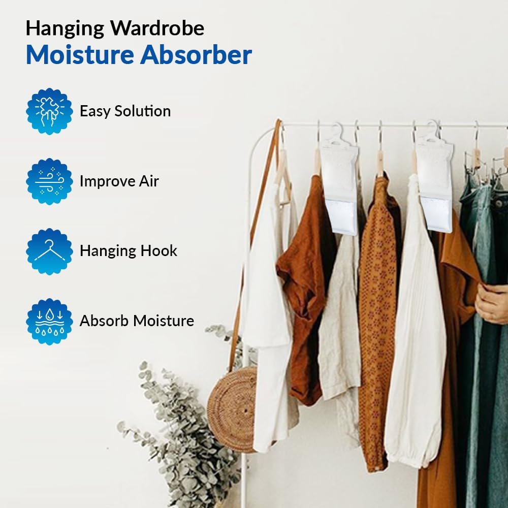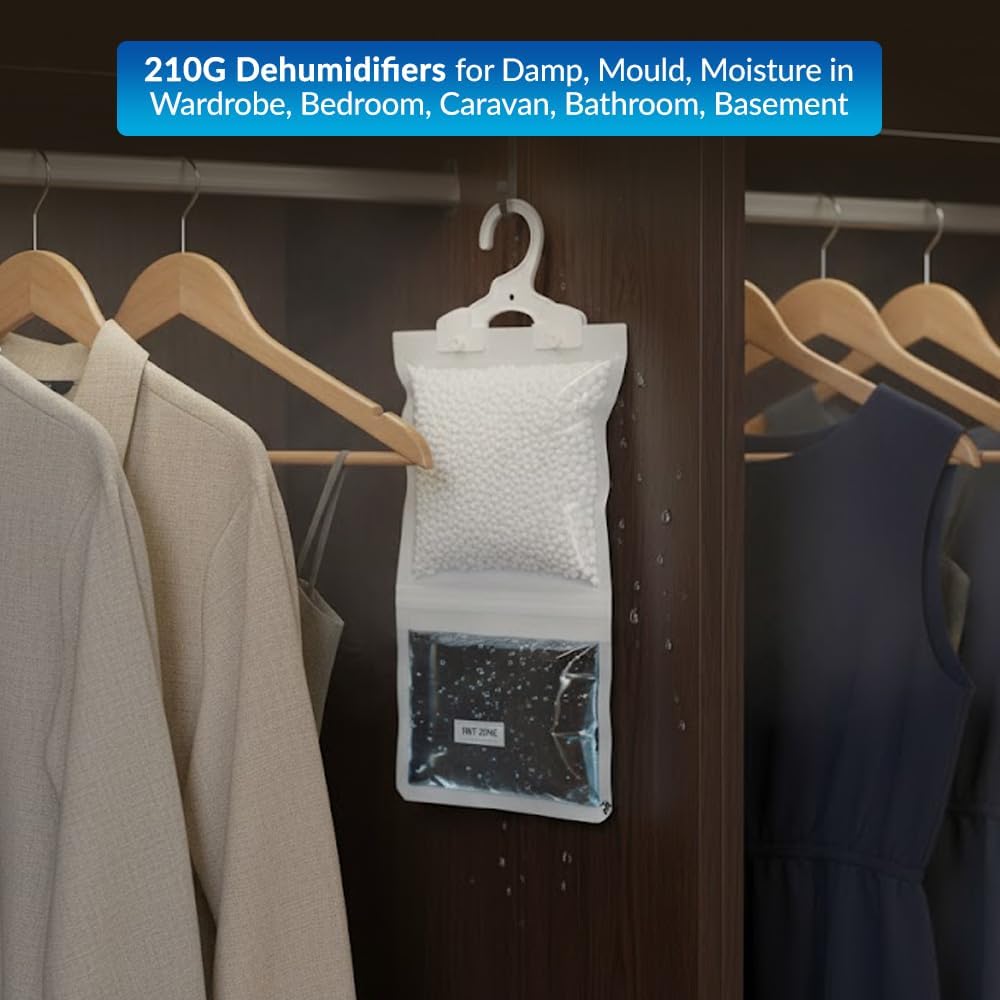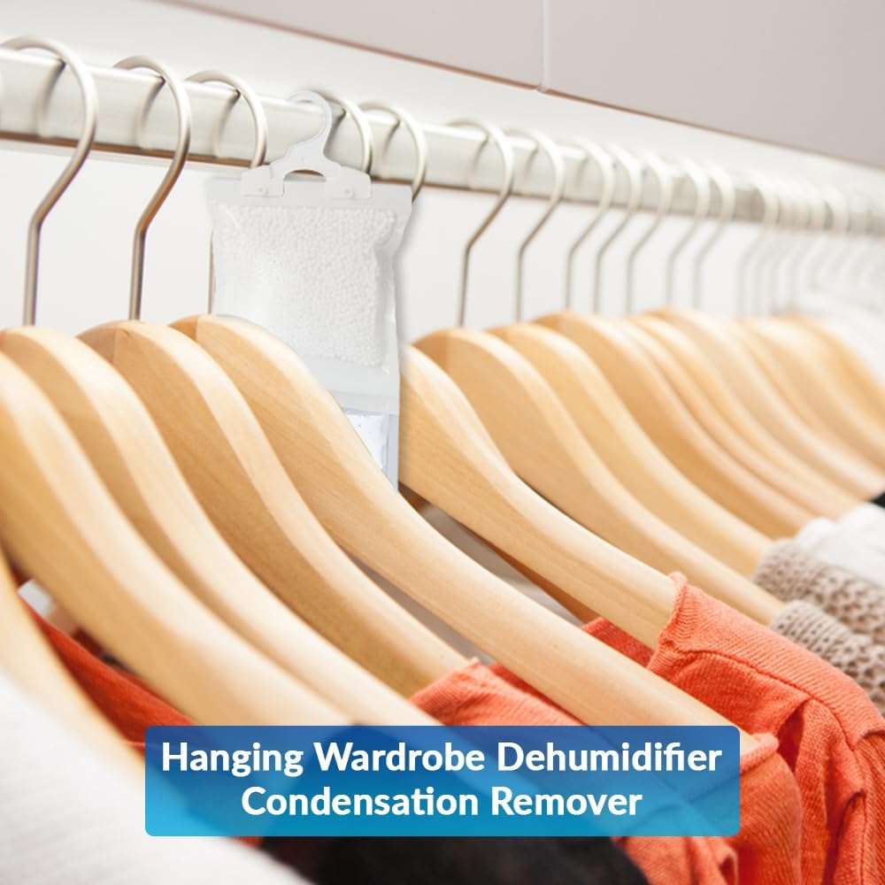 Protect your home, clothing, and storage spaces from damp, mould, and musty odours with the ACCURATE 210g Hanging Wardrobe Dehumidifier Pack of 10. Designed with advanced hydrophilic crystal technology, these compact and discreet moisture absorbers actively remove excess humidity from the air—helping to improve air quality while protecting your belongings from moisture damage. Ideal for wardrobes, cars, offices, warehouses, and enclosed spaces, this eco-friendly solution works silently without electricity.