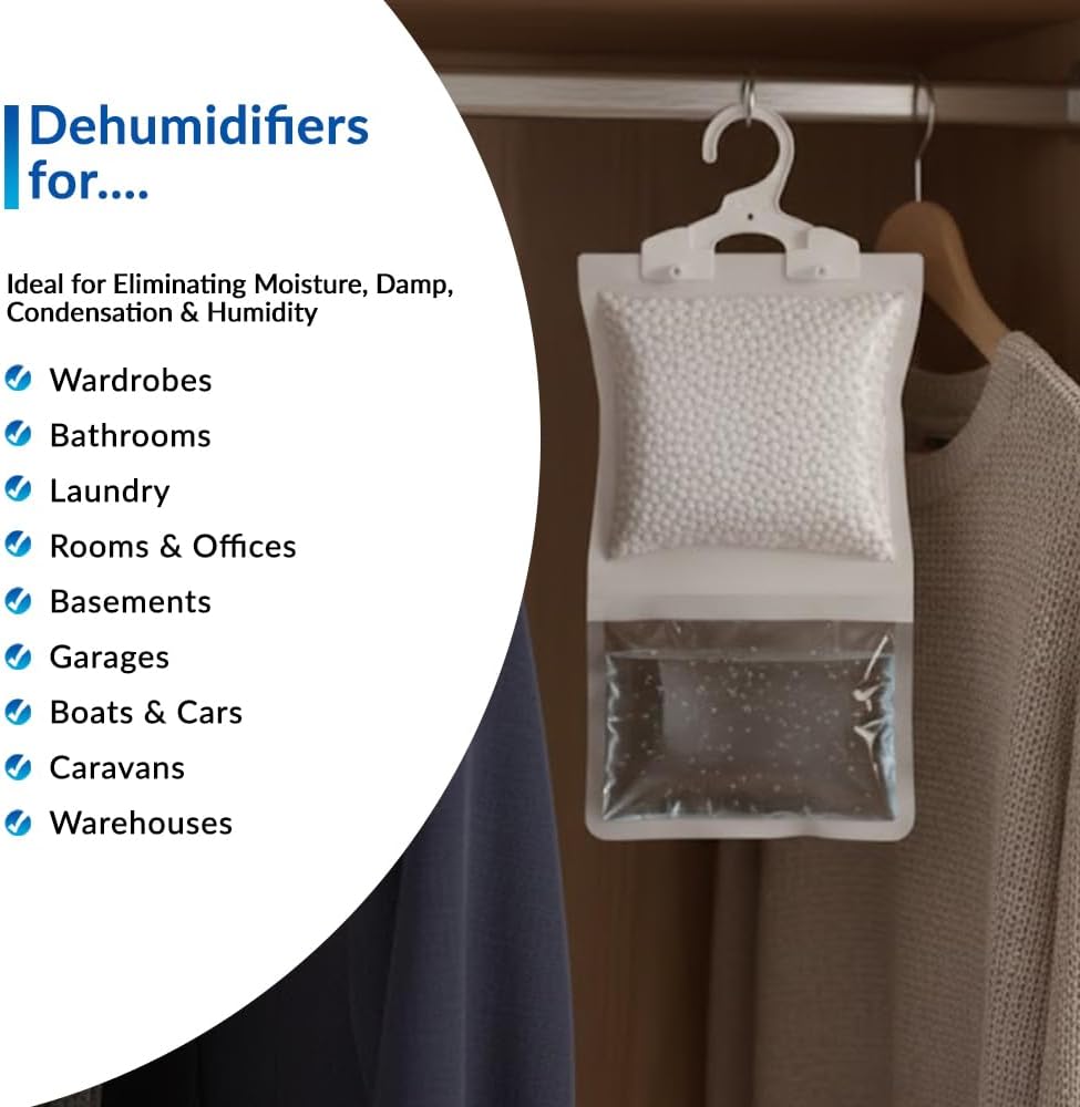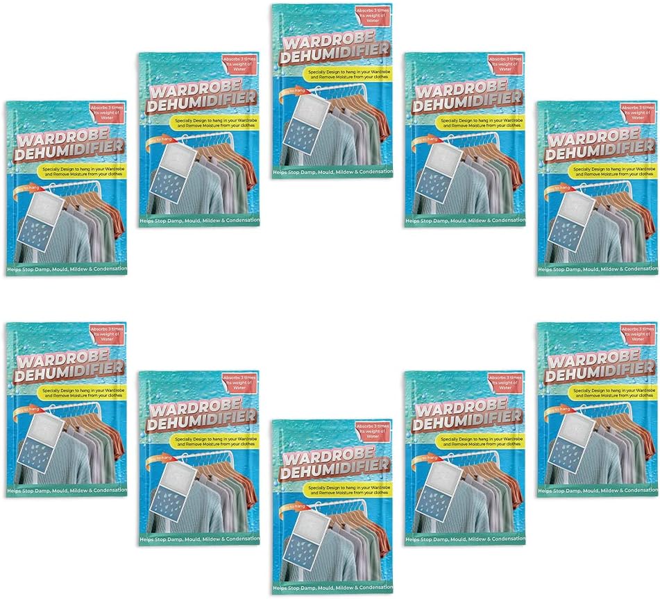 Its compact, discreet design allows for effortless hanging in wardrobes, cars, offices, and storage spaces without taking up valuable room. With silent, electricity-free operation and the ability to absorb up to three times its own weight in water, this pack of 10 offers outstanding long-term moisture protection at exceptional value.