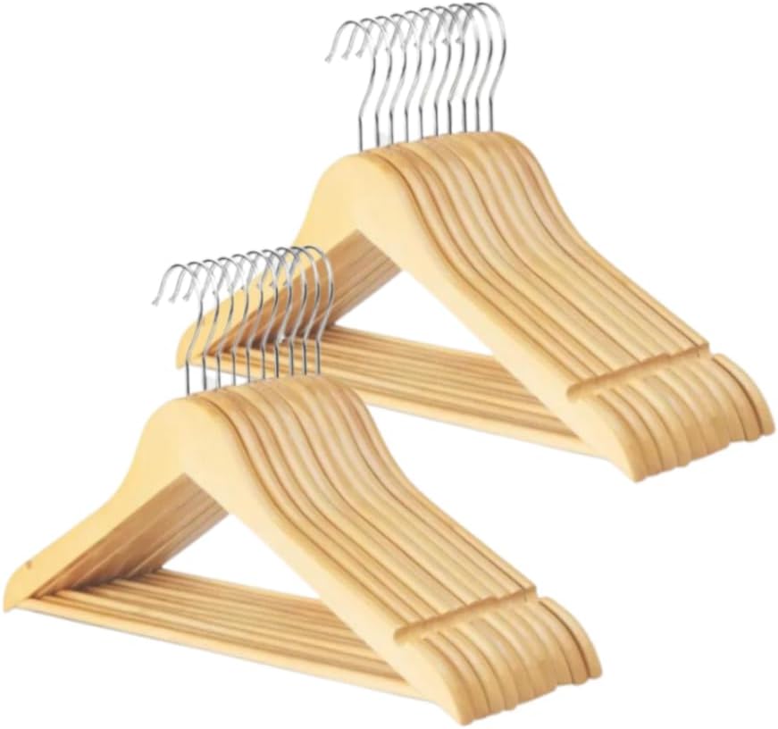 Strong Natural Wooden Cloth Hangers – Pack of 20
