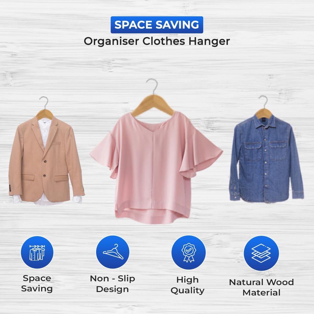 Upgrade your wardrobe with the 1ABOVE Premium Wooden Cloth Hangers, crafted from high-quality, sustainably sourced hardwood. Designed for strength, style, and long-lasting durability, these hangers keep your clothes organised, well-shaped, and protected. Ideal for home closets, boutiques, and retail displays.