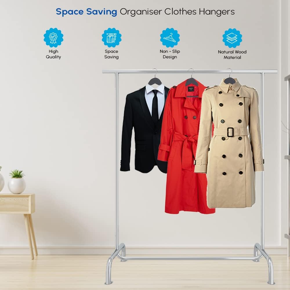 Upgrade your wardrobe organisation with the 1ABOVE Pack of 40 Strong Wooden Hangers, designed for durability, style, and everyday practicality. Crafted from high-quality natural wood, these sturdy coat hangers are ideal for organising suits, coats, jeans, dresses, and everyday clothing for both men and women. Featuring a non-slip trouser bar, strong shoulder notches, and a smooth chrome swivel hook, these hangers deliver long-lasting strength and a premium finish for any wardrobe.