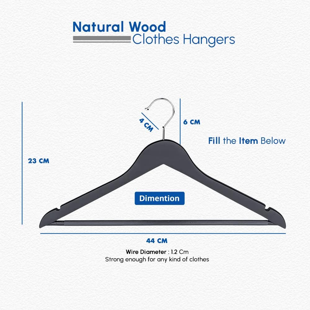 The 1ABOVE 40 Pack Wooden Hangers offers the perfect balance of strength, elegance, and everyday functionality. Made from premium natural wood, these hangers provide exceptional durability to support even the heaviest garments such as coats, denim, and suits. The non-slip trouser bar prevents clothing from sliding, while the strong shoulder notches keep delicate items securely in place.