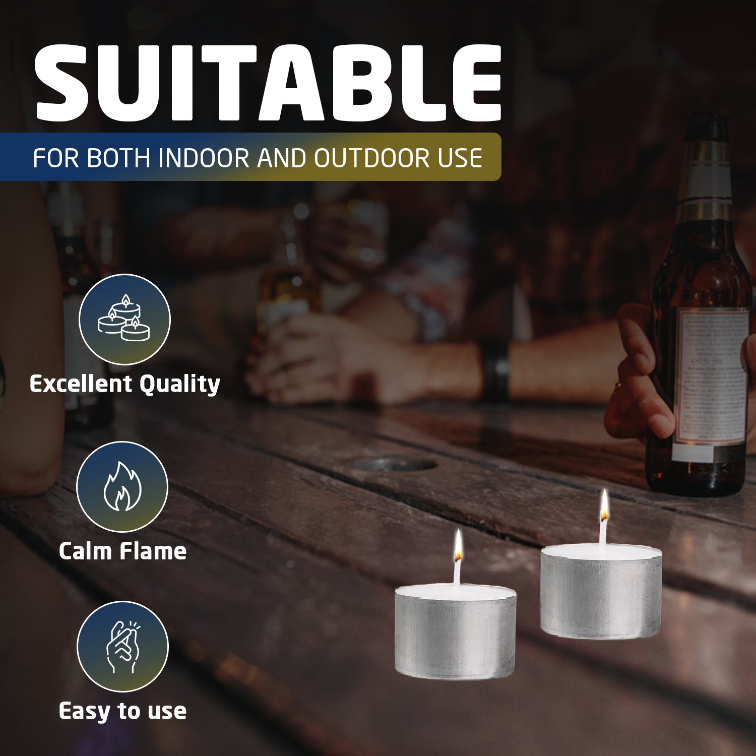 Long-Lasting Burn Time: Each tea light provides approximately 4 hours of consistent burn, allowing you to enjoy extended ambiance without frequent replacements.