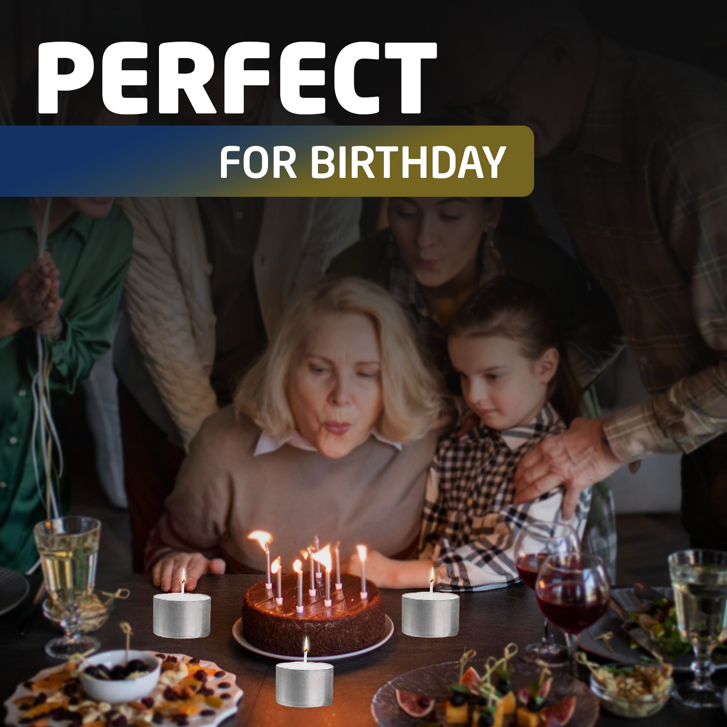 Metal Cup Design for Safety: Each tea light comes encased in a sturdy metal cup that prevents wax spillage, protecting surfaces and minimizing fire hazards.
