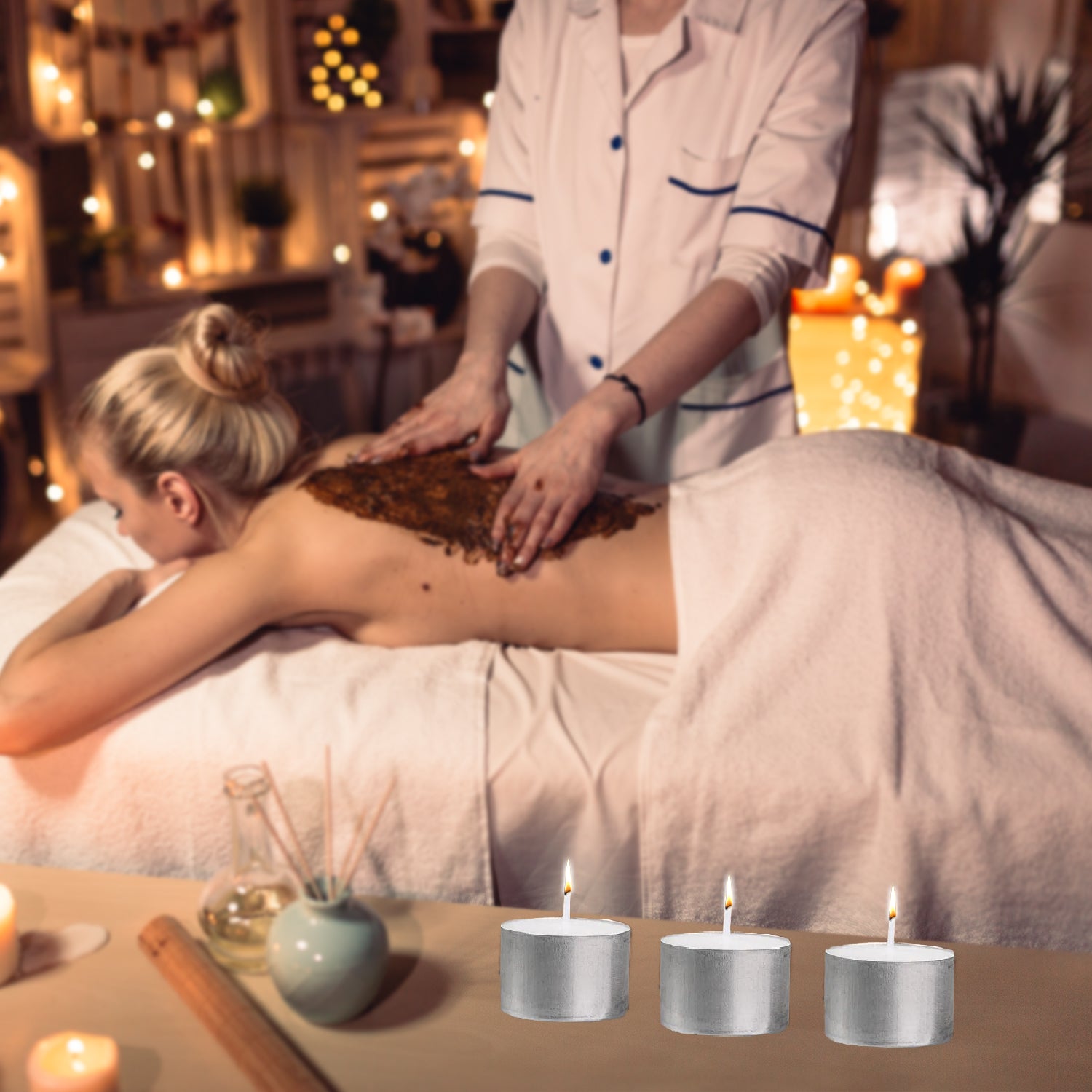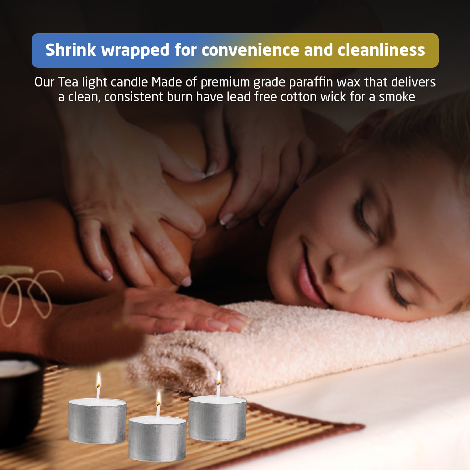 Lead-Free Cotton Wick for Clean Burning: Our tea light candles use lead-free cotton wicks, ensuring a safe and smokeless burn, making them ideal for indoor settings like homes, spas, restaurants, and massage parlors.